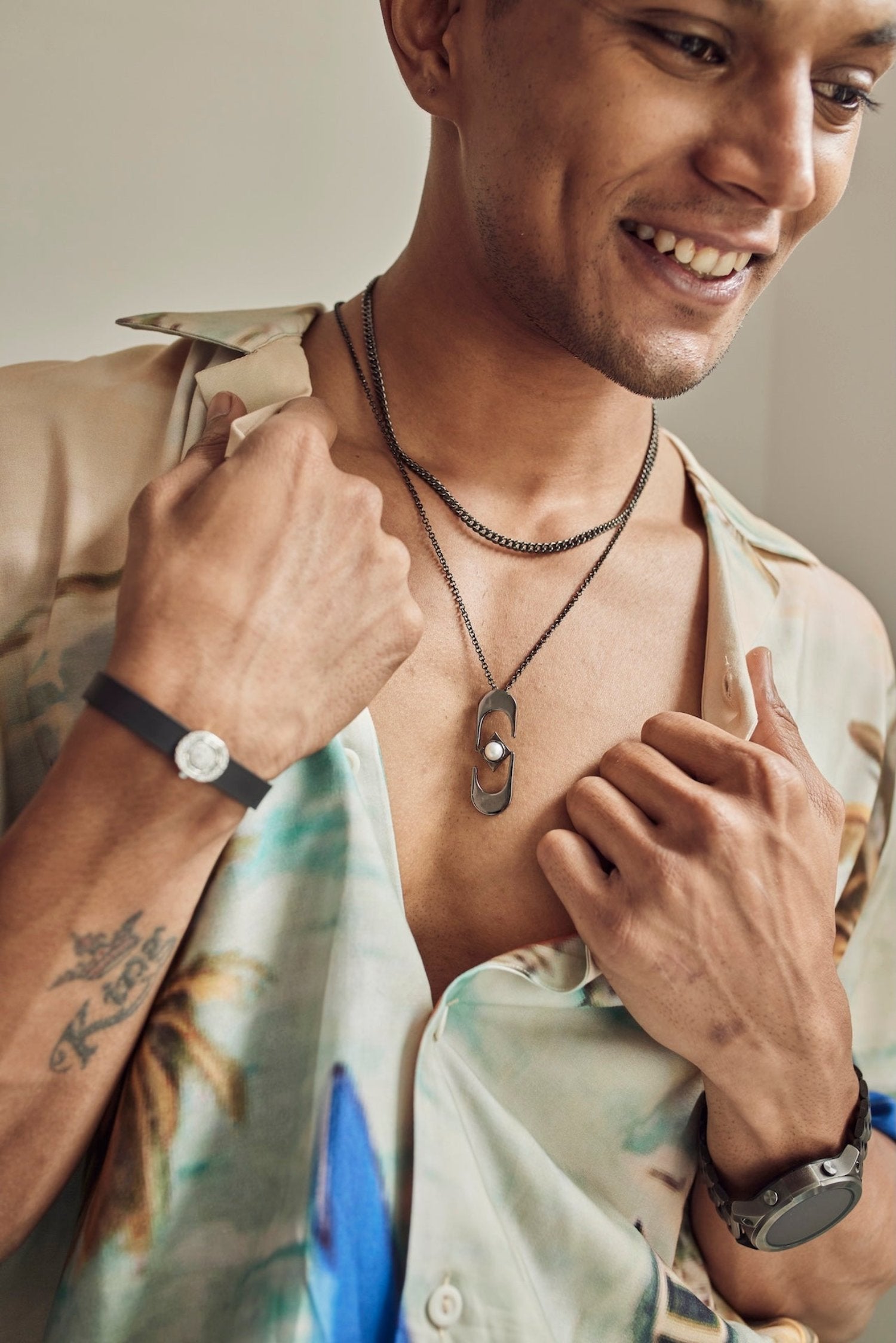 For our anniversary, I wanted to get my partner something special, so I chose a Zoei925 hook pendant paired with a high-link chain in black. He loved how bold and unique the pieces looked together. The sleek, masculine design fits his style perfectly, and he wears them whenever we go out. It was the perfect gift to show how well I know his taste.